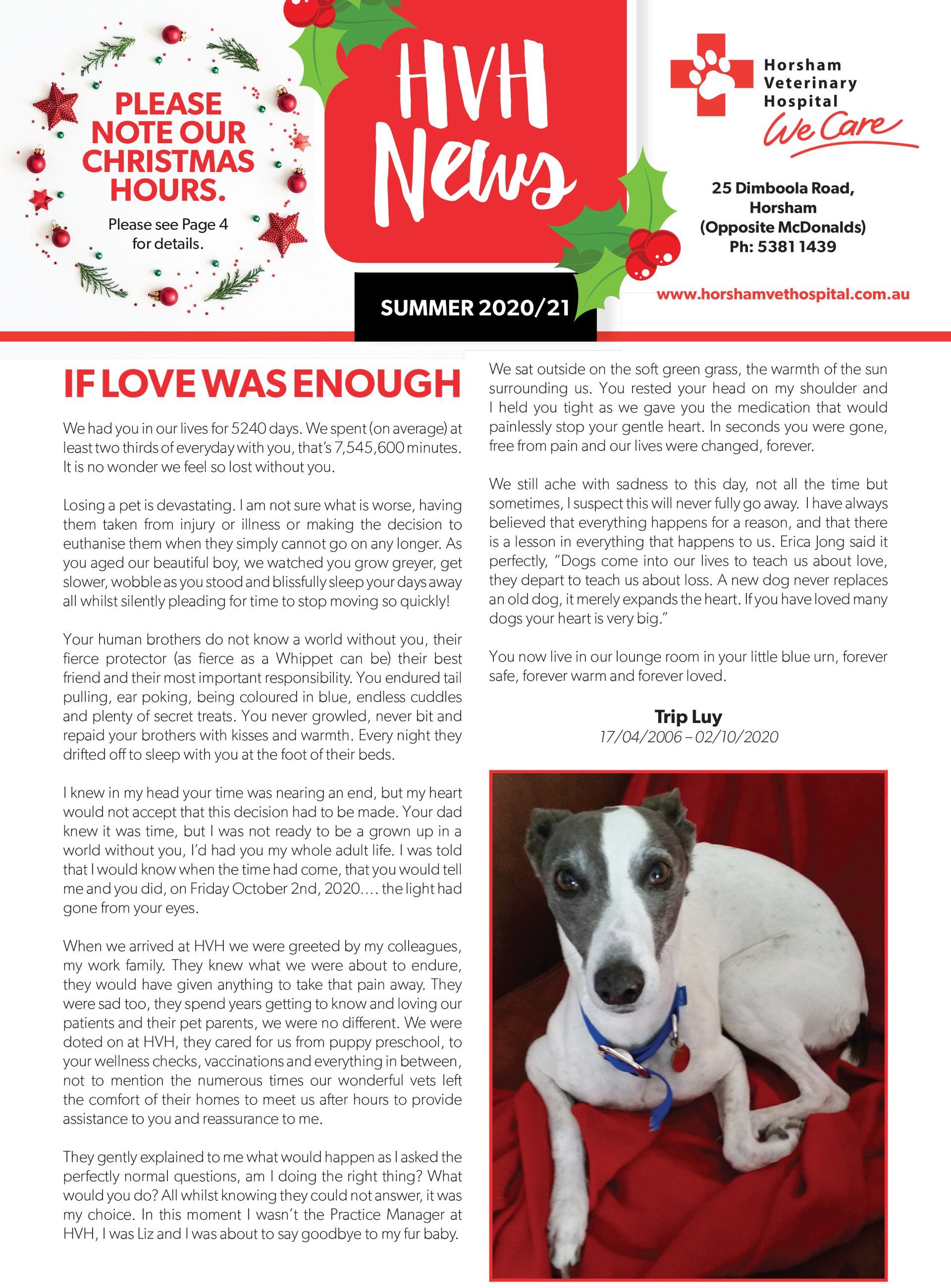 Thank you so much to all the staff at Horsham Vet Hospital for all the love and care you gave Roxy over the last few years. She definitely loved riding in your vet taxi and enjoyed visiting you all.